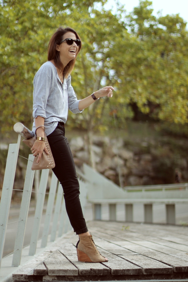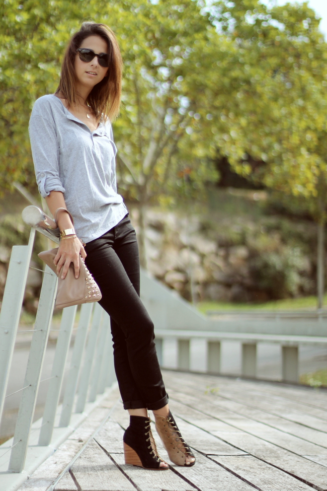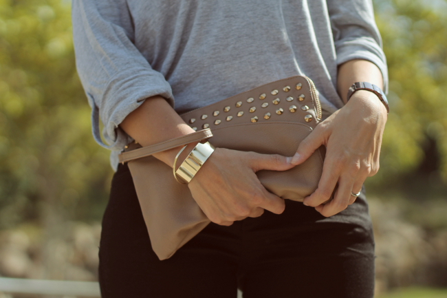 grey t-shit: zara men (a/w 12-13) – sunglasses: ray-ban – studded clutch: suite blanco (a/w 12-13) – skinny jeans: zara (a/w 12-13) – ankle boots: catu shoes (a/w 12-13)