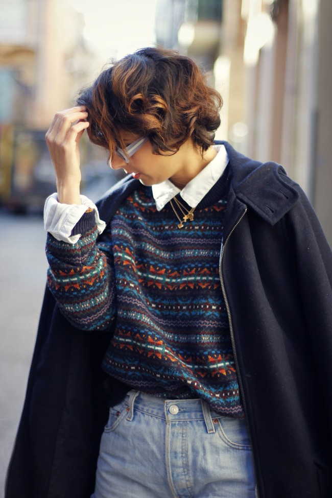 Ahora si que bajó la temperatura, estamos en pleno invierno y el frío se hace notar. Lo único bueno es que puedes jugar con todas las prendas que quieras. Últimamente me ha dado por usar la ropa de mi chico. En este caso ha sido el sweater geométrico y el abrigo. Me encanta rebuscar entre sus cosas y encontrarme con todas estas prendas nuevas… 🙂