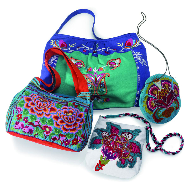 La línea “Frida”, inspirada en la famosa y reconocida pintora Frida Khalo y a su querido Méjico, donde predominan los bordados sobre negro, dorados antiguos, flecos y flores. Esta colección en particular llama mucho mi atención ya que son este tipo de accesorios los que realmente le dan personalidad especial a tu look.