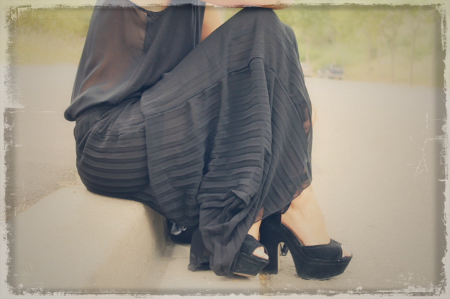 pleated palazzo chiffon pants: ax paris (s/s 12)- lace back top: zara (s/s 12) – platforms: grettta (steve madden) – studded bag: asos