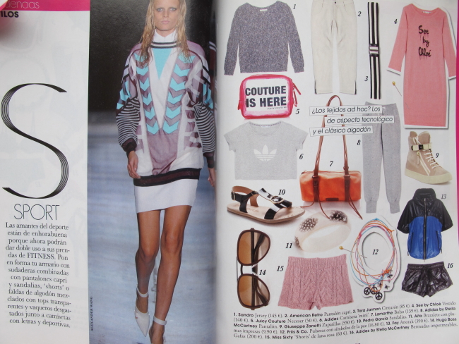 “Sport is now a new trend, from the GYM to the runway and viceversa” Marie Claire, Spain, No 295 – April Edition- pg. 96