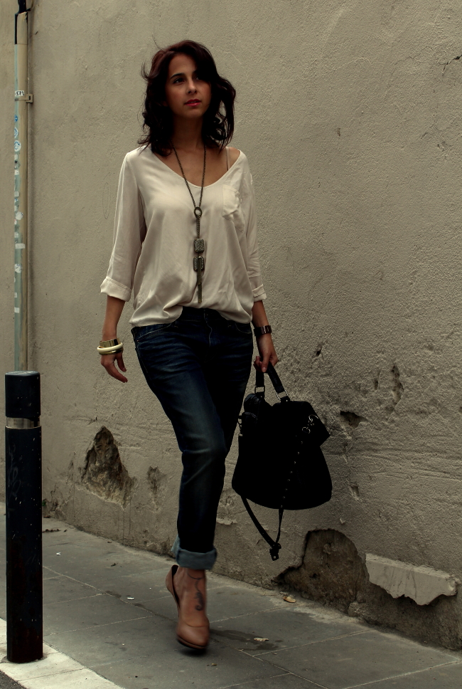 No hay porque dejar de ser/estar femenina al usar un «boyfriend jean«. Dóblalos arriba del tobillo, póntelos con balerinas, arriésgate y combínalos con taconazos, si es verano úsalos con sandalias. Dale un toque relajado con camisetas largas y uno chic con blusas de gasa… infinitas opciones, depende de ti.