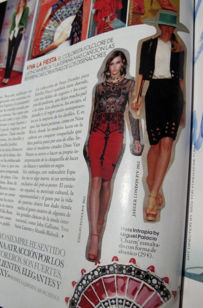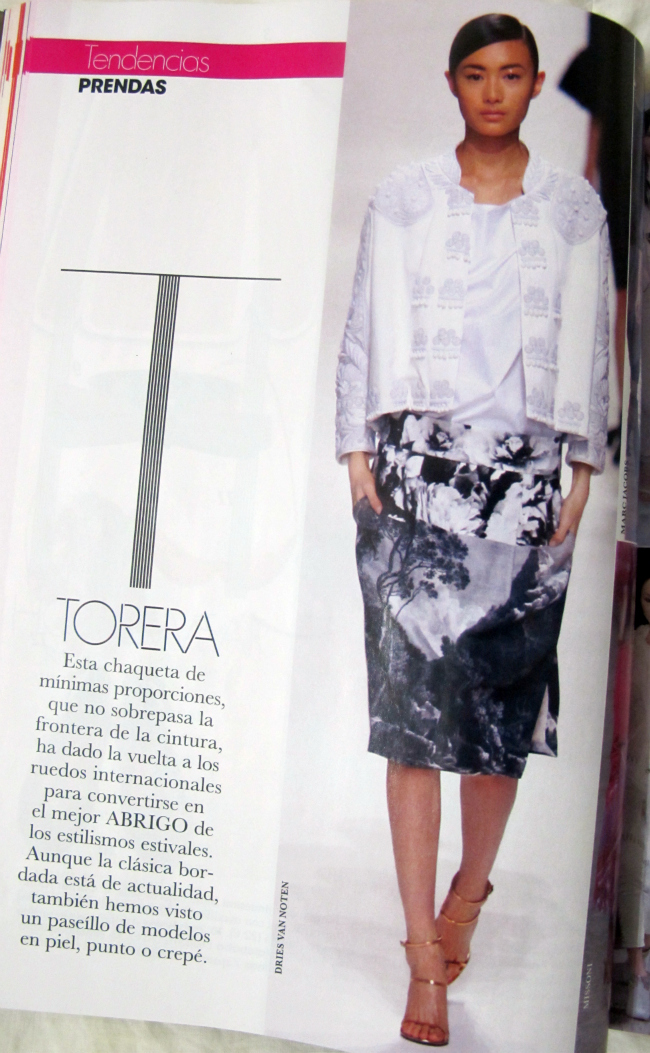 Esta vez, la hemos vuelto a ver en las pasarelas para la pri/ver 2012 con cortes a medida, chaquetas a la cintura más conocidas como toreras, bordados dorado y negro, colores vivos y muchos detalles glamurosos.