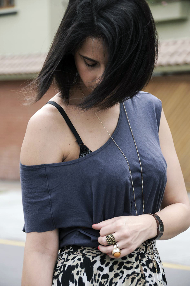 Estas fotos son del look que usé para una fiesta a la que asistí con unas amigas la semana pasada. De hecho no es un look muy de diario, eso ya lo sé, pero tenía que buscar la forma de poder compartirlo con ustedes y de día se pueden apreciar los detalles mucho mejor, por ejemplo mi nuevo “cristal bra” que me traje de NY y el corte de la camiseta, una antigua que tenía y a la que le quería dar un nuevo uso este verano.