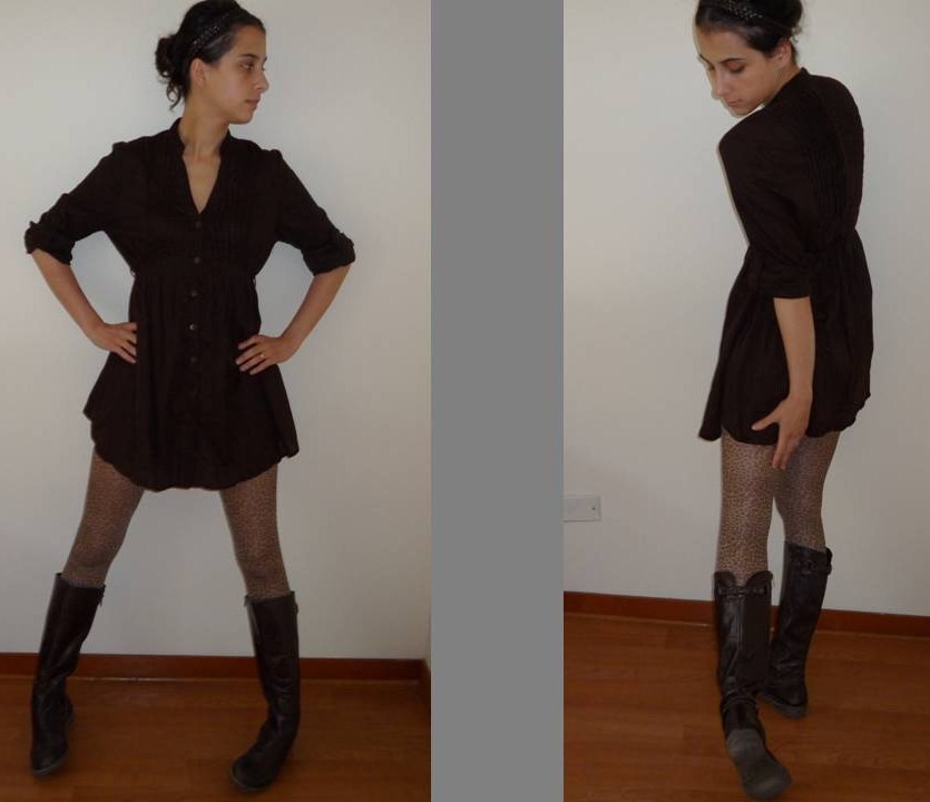Los vestidos animal print reflejan mucha feminidad así que los combinaría con unos botines de pasadores (Dr. Martins) o unas balerinas negras con pantys bien tupidas, una chaquetita de cuero SIN accesorios (deja que el vestido sea el protagonista)…