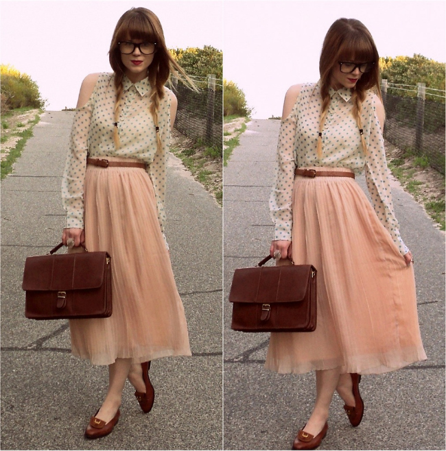Estilo «Prep/Trendy» – Falda plisada – nude pleated skirt