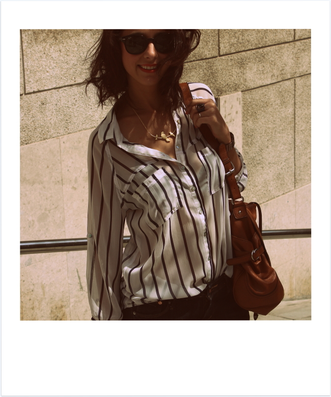 Este look fue básicamente lo que usé ayer, aproveché que me había maquillado para una entrevista así que le pedí a Marisa que me tomara las fotos casi a lo loco para poder compartir con ustedes el outfit. Este no tiene nada novedoso pero me he obsesionado con esta hermosa blusa de gasa a rayas así que la seguirán viendo por un tiempo – o hasta que el calor me lo permita.