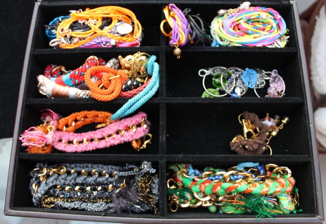 Yo, como no pude con mi genio, me llevé una hermosa pulsera vintage trenzada metálica. La tela de esta fue traída de un viaje en los 80´s. Ya verán lo hermosa que se ve puesta ;P