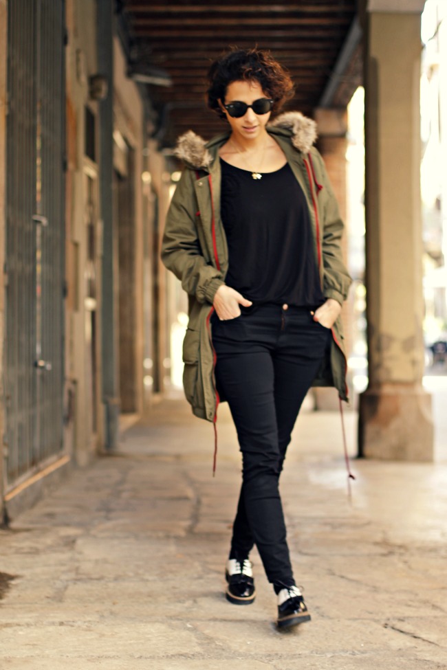 CREEPERS: ASOS (A/W 2013)- PARKA: ZARA (A/W 2013) – JEANS: ZARA (A/W 2013) – TOP H&M (OLD) – ACCESORIOS: MAKEDOONIA (A/W 2013)