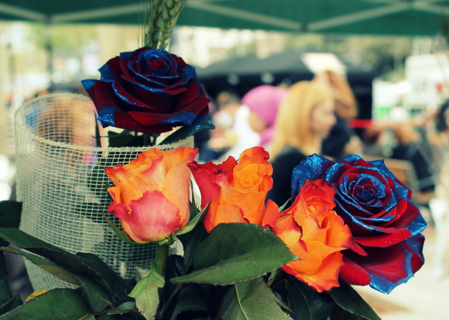So this is how Sant Jordi is celebrated in Barcelona. As I told you, it is kinda like a Saint Valentine’s day mixed with a Day of the Book; Saint George’s day. Anyway, there’s books everywhere, flower stands in every corner and lots of people walking around.