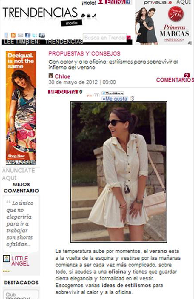 Trendencias es una web dedicada a moda. En ella encuentras; a parte de tendencias, consejos y propuestas, información sobre desfiles, eventos, showrooms. Esta mañana, como los sigo por facebook, me encontré con mi foto en uno de sus posts. Que alegría ser mencionada como referencia a su artículo «Con calor y a la oficina: estilismos para sobrevivir al infierno del verano«, sobretodo porque estoy con un vestido hecho por diseñadores independientes Peruanos, en este caso: El Closet de mi Hermana #exitaso