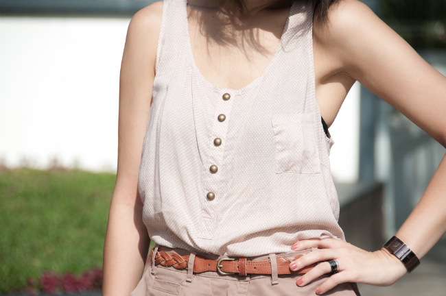 pantalón pinzas – correa trenzada – camiseta polka dots