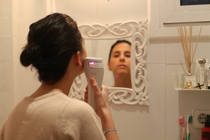 Hola, soy volvemos con un post de belleza. ¿Recuerdan que hace poco les mostré mi nuevo “juguetito” en Instagram? Se trata de un nuevo dispositivo portátil de Tria Beauty para tratar los principales signos de envejecimiento desde casa con resultados en dos semanas. Es un tratamiento diario, tú misma creas tu propia rutina, en mi caso lo hago cada noche después de desmaquillarme. Este tratamiento te ayuda a mejorar las líneas de expresión, mejora el tono de piel y le da luminosidad al rostro. Yo llevo pocos días, todavía no puedo asegurarles nada pero, aparte de tener las mejores referencias de compañeras que ya lo han usado, si puedo asegurarles que es muy cómodo y seguro de usar y que pronto veré los resultados. En las fotos les pongo paso por paso cómo lo uso cada día y dentro de poco les contaré cuáles fueron los resultados.