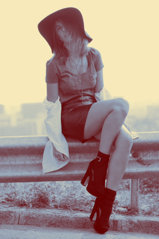 floppy hay: h&m (a/w12) – t-shirt: gamarra – denim skirt: h&m (s/s 12) – leather skirt: forever 21 (old) – ankle socks: koketa (old) – platforms: grettta by steve madden (a/w12) – necklace: mango (a/w13) – cross ring: stradivarius (a/w13) – bracelet: h&m (s/s12).